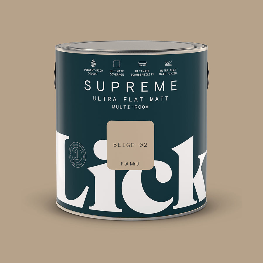 Move over to beige's dark side with Beige 02, in a tasteful matt finish perfect for toning things down. Hints of buff brown bring an effortless boldness, while the grey undertones and matt finish make it a surefire winner in a north-facing room.