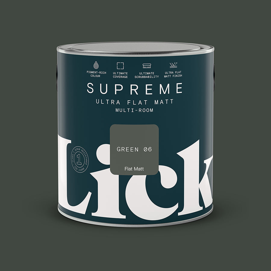 Imagine a darker-than-dark green bedroom complete with heavy velvet drapes, a king-sized bed and lights down low. That's what Green 06 is best at – creating depth, drama and decadence, with a smooth matt finish so the ambiance isn't spoilt by unwanted glare.