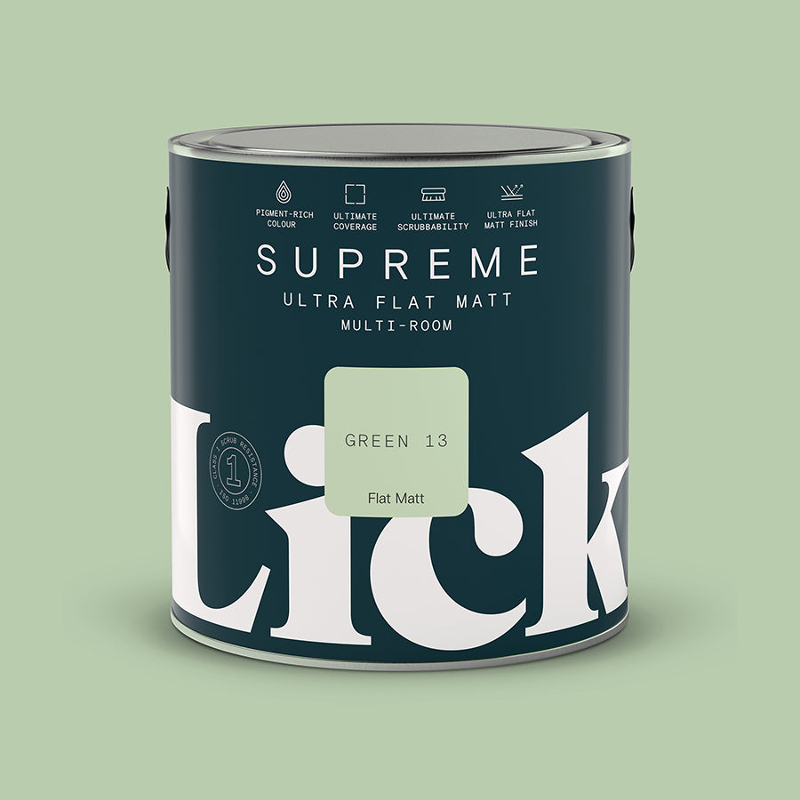 For optimistic, uplifting Green 13, we took classic sage green and added a little more brightness – plus plenty of yellow and white undertones. The result is a playful sage that'll lighten any space. Available in a matt and eggshell finish.