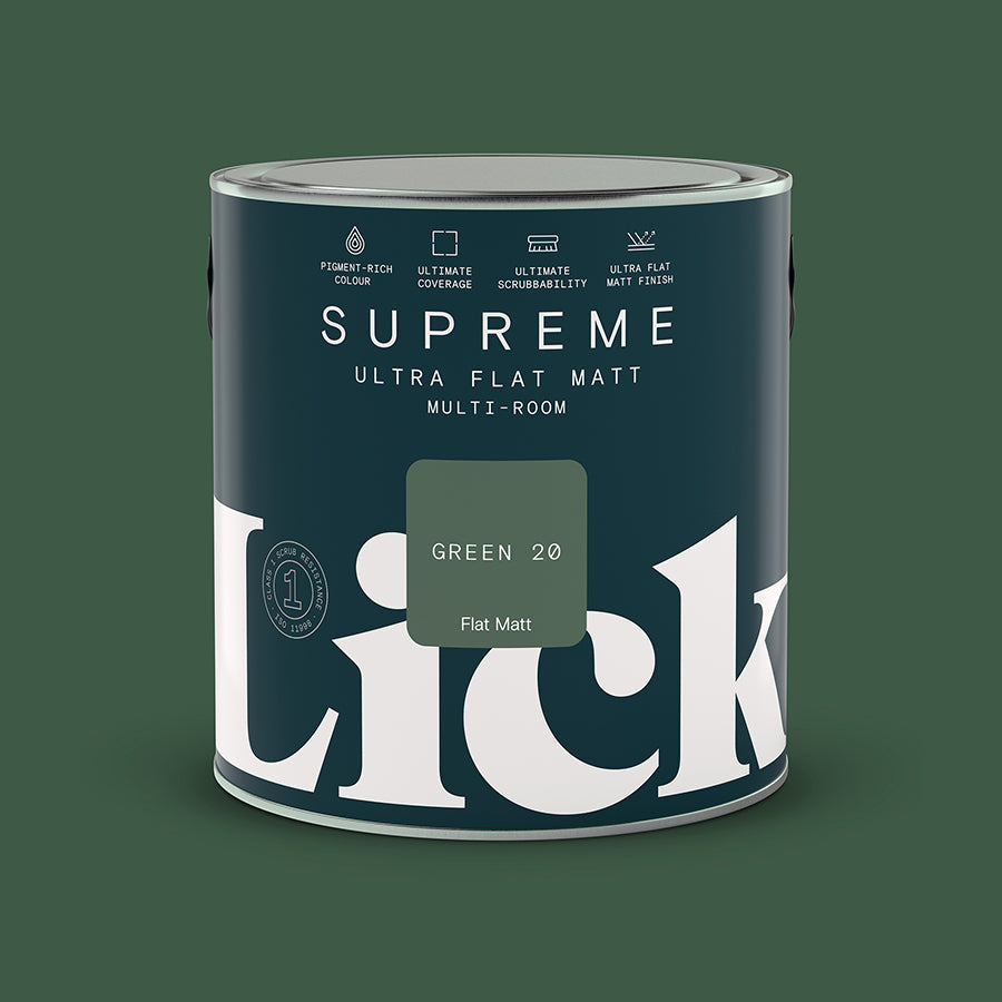 Enter the woods with Green 20, a fairytale shade of forest green which is full of shady shelter warmth, right down to the moody black in its base. Available in a matt and eggshell finish.