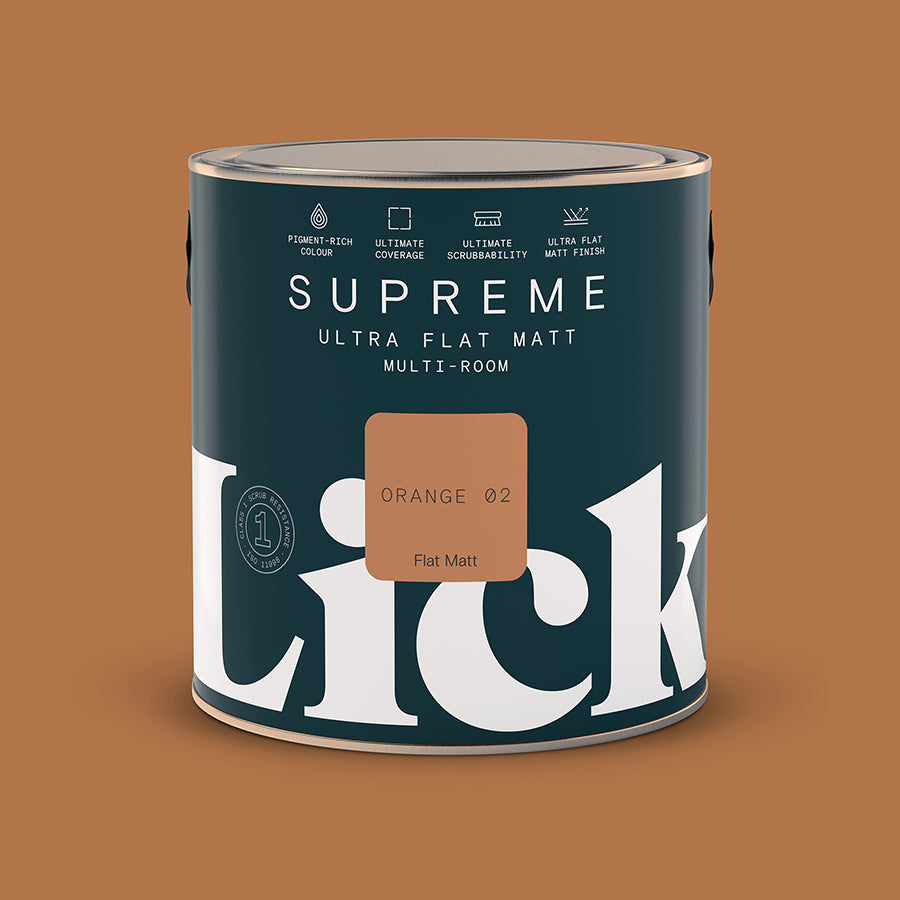 Lick Orange 02 paint has a mid warm shade of sienna orange with a touch of brown. Now let's take care of that statement wall you've been planning.
