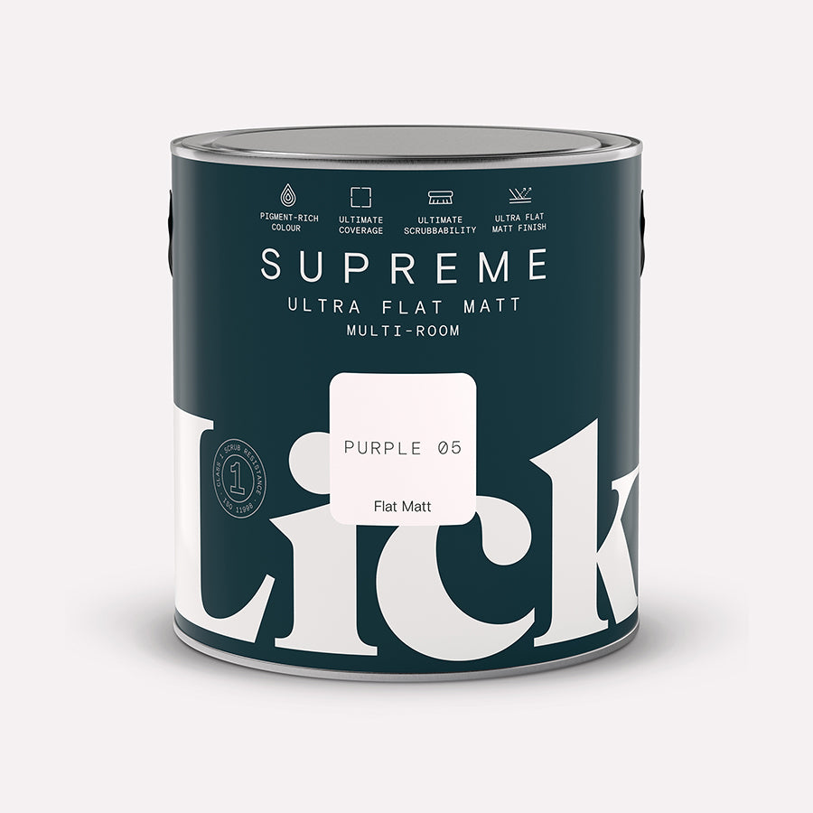 As grey as purple gets, Purple 05 is a soft, muted near-neutral lilac paint on a stripped-back, modern grey base. Understated enough to suit anywhere but with enough colour to still feel fun, and available in a matt and eggshell finish.