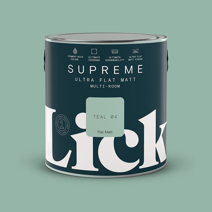 Teals are often dark and moody, but lighter mid Teal 04 leans into its green undertones for a perfectly calming effect. Nice and warming for rooms which could do with a laid-back shade. Available in a matt and eggshell finish.