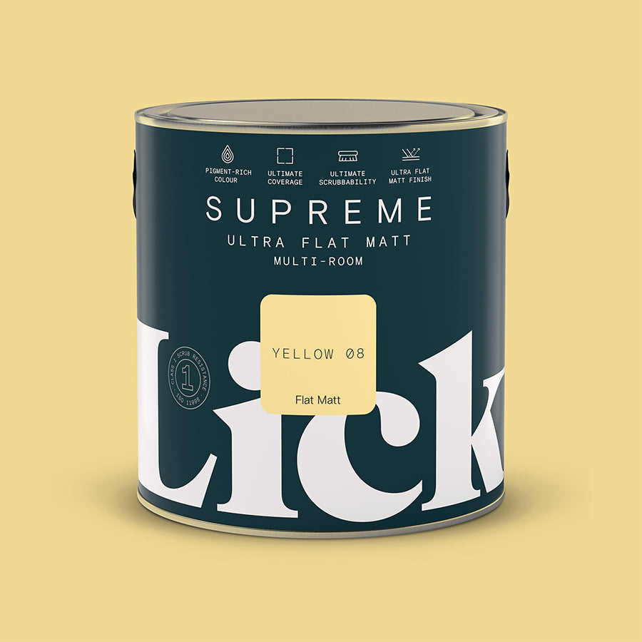 Dusty, warm and almost golden, Yellow 08 is the ultimate in soothing, comforting yellow. That's because the grey in the base amps up the cosiness, available in a matt and eggshell finish.