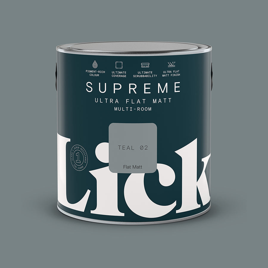Lick Teal 02 paint is a versatile shade that has the ability to stand out as a beautiful, bold accent colour, or act as a relaxing, soothing, complementary colour. There's endless exciting ways to experiment with Teal 02.