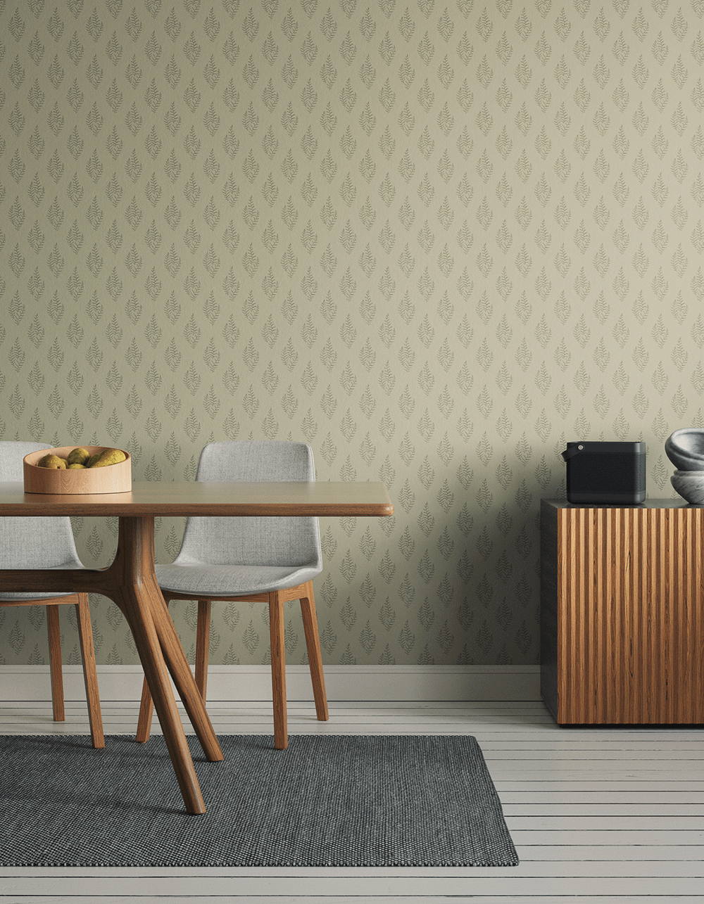 A retro pattern of large ferns modernised by a minimalist design, printed in a mix of contemporary greens on fine grade toll-coated non-woven paper. Great for any room in a naturally-styled home, with paste-the-wall application to minimise fuss and mess.