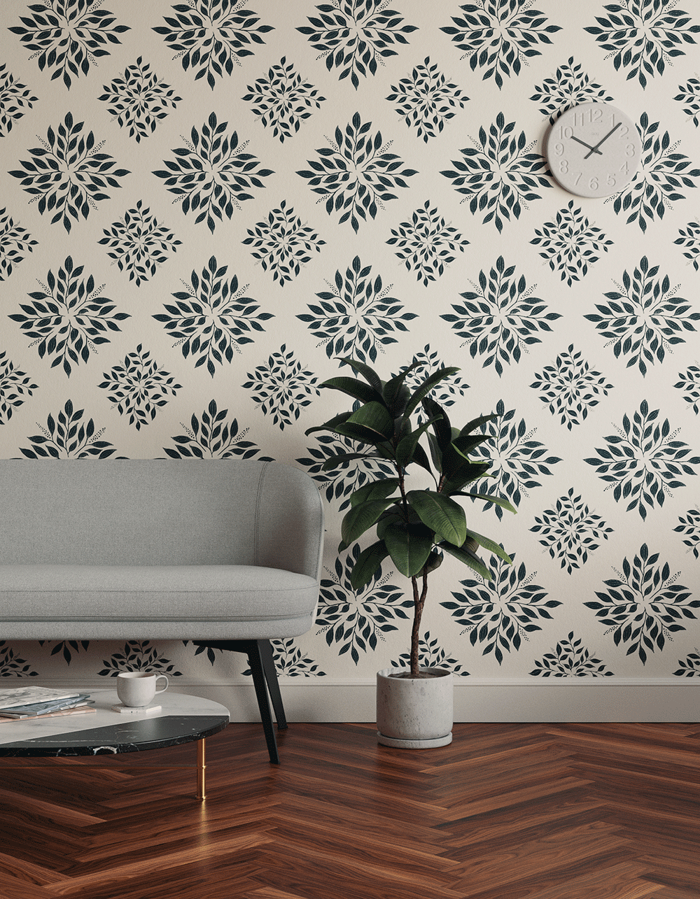 Gorgeous eucalyptus leaves meet geometrical wizardry in this thoroughly modern design, created with a blend of white and blue on fine grade toll-coated, non-woven paper. Ideal for contemporary spaces, with paste-the-wall application for no-mess hanging.
